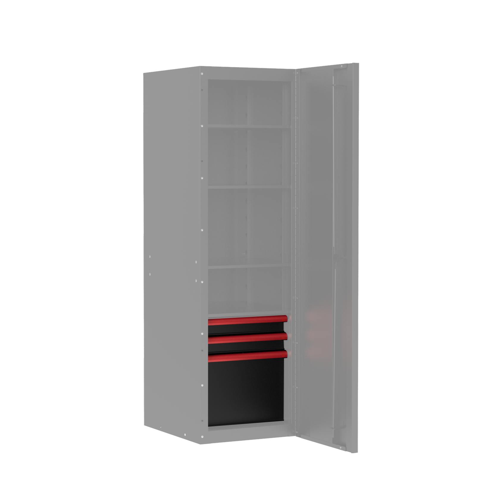 - Lift-and-latch drawers with full-width pull handles and dual latches